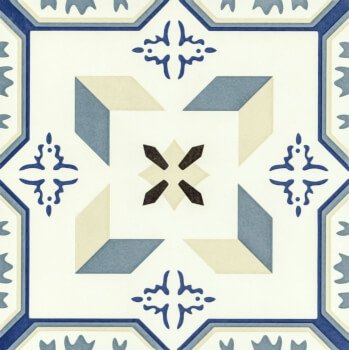 vintage blue and beige color, with bold pattern. Offering a modern twist on the traditional floor, whilst creating a bold statement.
